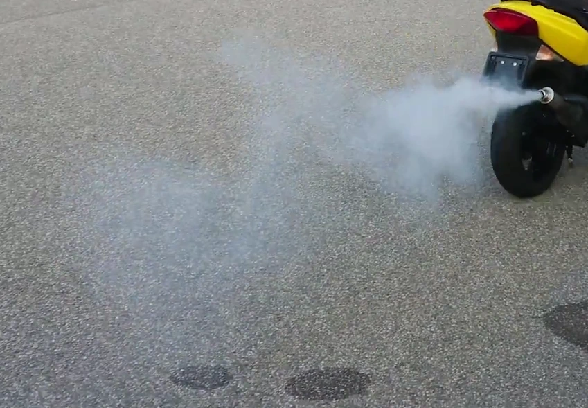 - Je nach Motorenart und Treibstoff haben Abgaswolken charakteristische Farben. Viertaktabgase sind, wenn sie denn sichtbar sind, eher hellgrau bis weißlich. Dieselabgase können in einem erdigen Dunkelbraun oder pechschwarz daherkommen. Zweitaktabgase haben durch das mitverbrannte Öl häufig einen mehr oder weniger starken Blaustich – mein Favorit! 📷